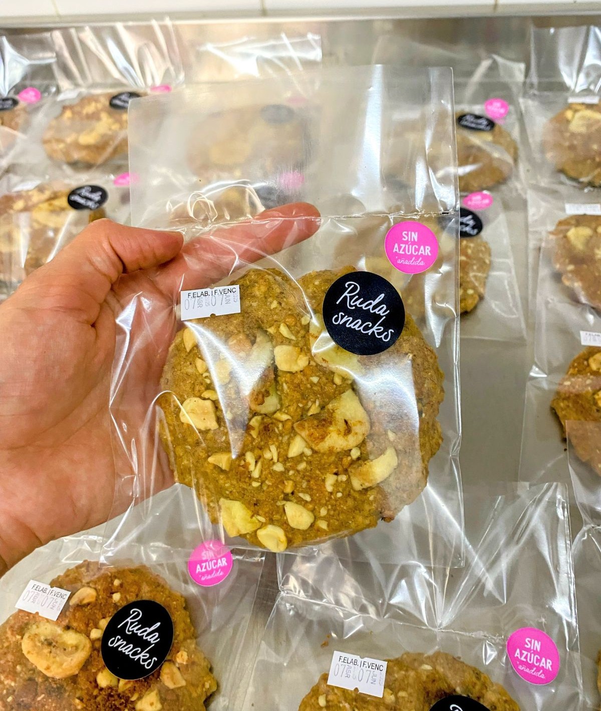 INGREDIENTES: avena sin gluten, plátano, aceite vegetal, almidón de maíz, alulosa, dátil, harina de garbanzos, harina de arroz, harina de linaza, esencia de vainilla, stevia liquida, especias dulces, polvo de hornear, bicarbonato, sal.